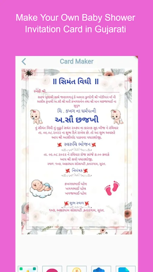 Make Beautiful And Eye Catching Invitation Card With Different Baby Shower Card Template To Invite Guests On Your Baby Shower Party With The Help Of Baby Shower Invitation Card Maker App in Gujarati Language.