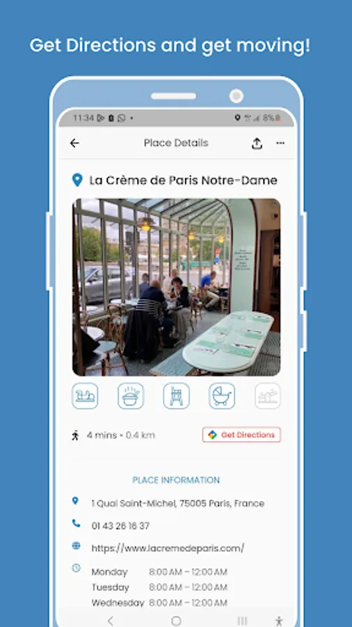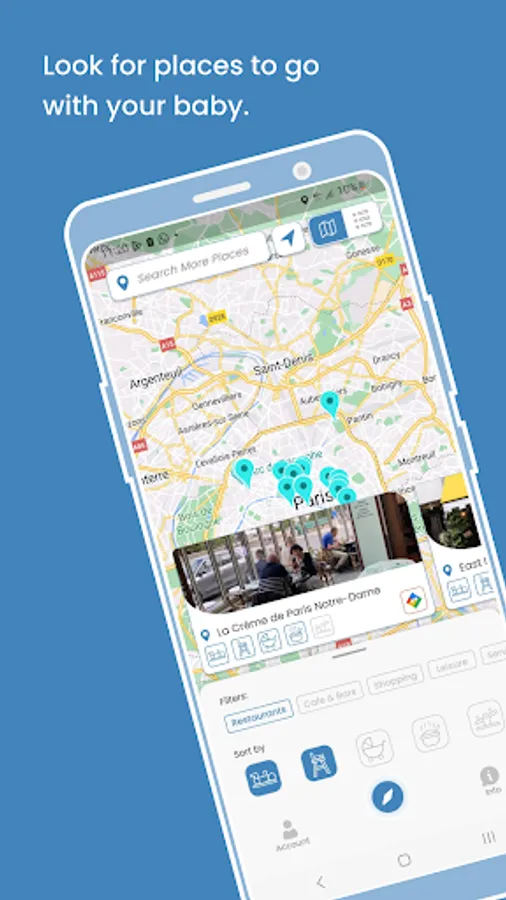 When you're out and about with your little ones, BabyCities becomes your go-to guide. Browse through our collection of places entered by the community filtered by type of location (restaurant, coffee shop/bars, leisure, shopping, services), complete with the amenities you desire. You'll also find useful information like the walking distance to each location and directions to easily reach your destination, ensuring a smooth and enjoyable family outing.