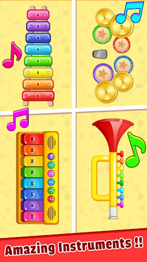 ✔ MUSICAL INSTRUMENTS: Use your fingers to play with Drums, Piano, Trumpet and Xylophone