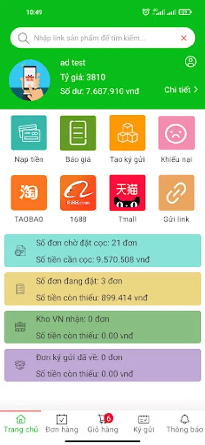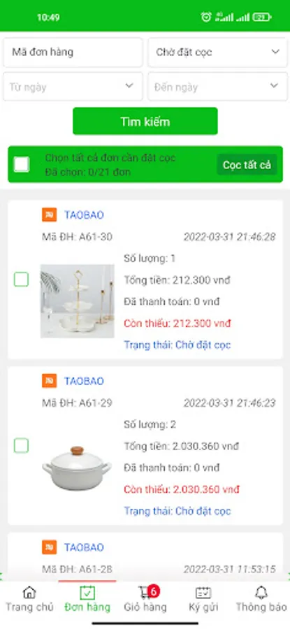 Ordering system from e-commerce sites such as Taobao, Tmall, 1688. Manage orders and status of orders.