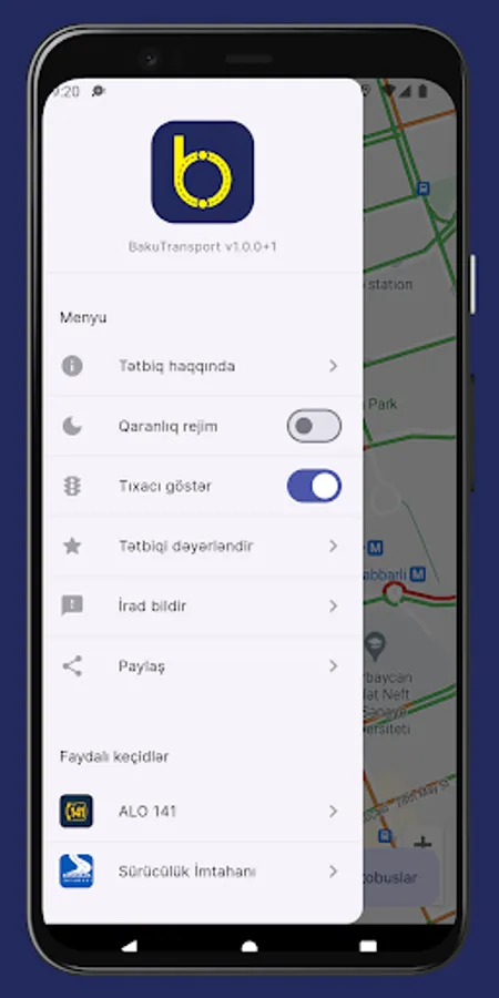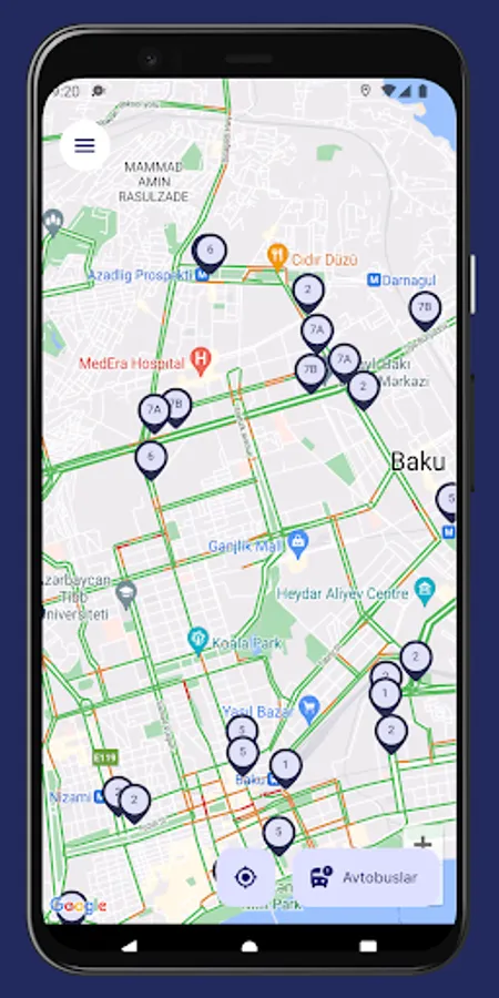 Using the application, you can track the locations of BakuBus, Khaliq Faigoglu and other buses on the map. In addition, the application helps you determine the location of buses by showing your location on the map.