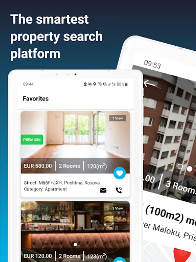 Would you like to rent an apartment/flat or buy a house? At banesa24.com you can easily search for properties to rent or buy in Kosova and surrounding states. We offer you the Banesa24 app in which you can select between «rent» and «buy» as well as set various search criteria very conveniently just by sliding your finger.