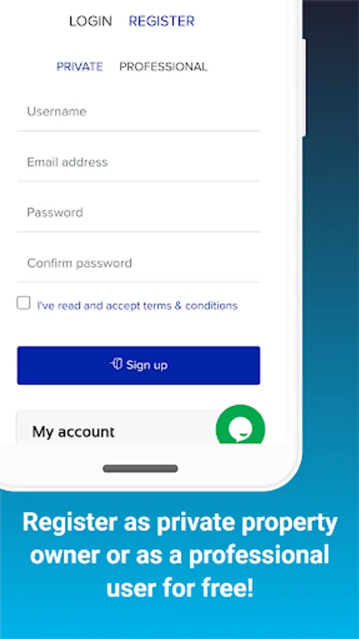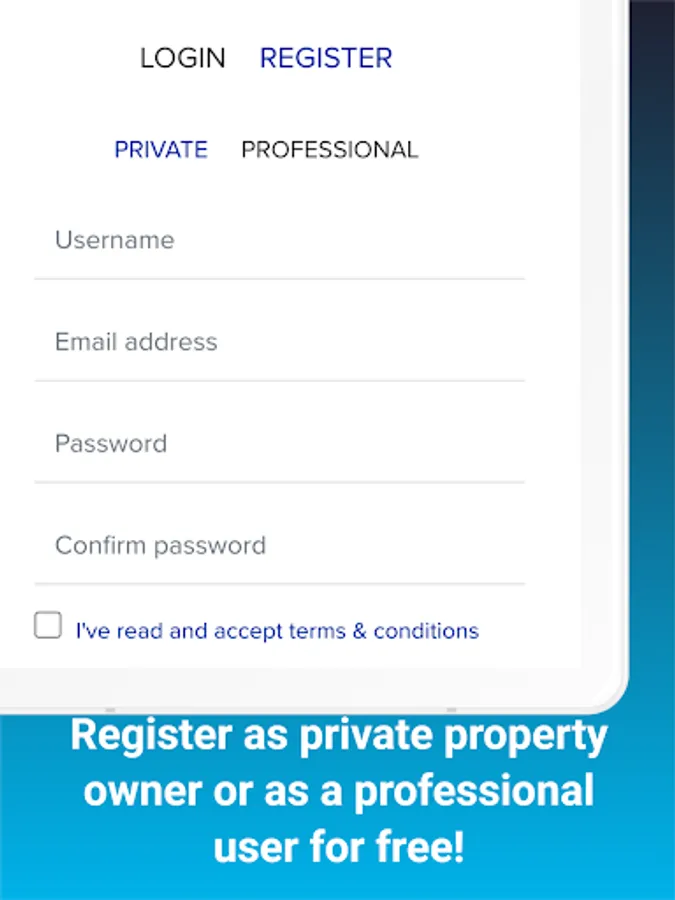 - Set up and manage a personal user account with which you can comfortably advertise your residential property. Upload photos of your apartment or house directly from your smartphone.