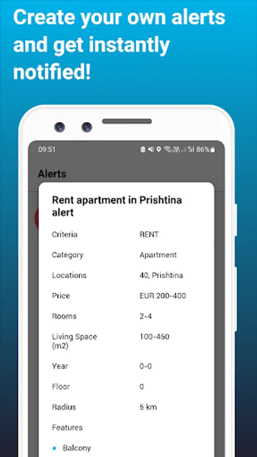 - After setting up your personal search subscription, you will be informed about new ads with a push-notification.