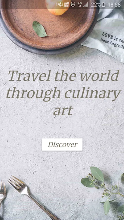 With our app you can easly travel the world trought culinary Art by explore the best of cooking recipes!