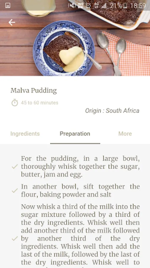 All cooking recipes are described in three sections: Ingredients, preparation and more information; As simple as that! Cooking should not be complicated and our cooking recipe app can help you prepare awesome meals.