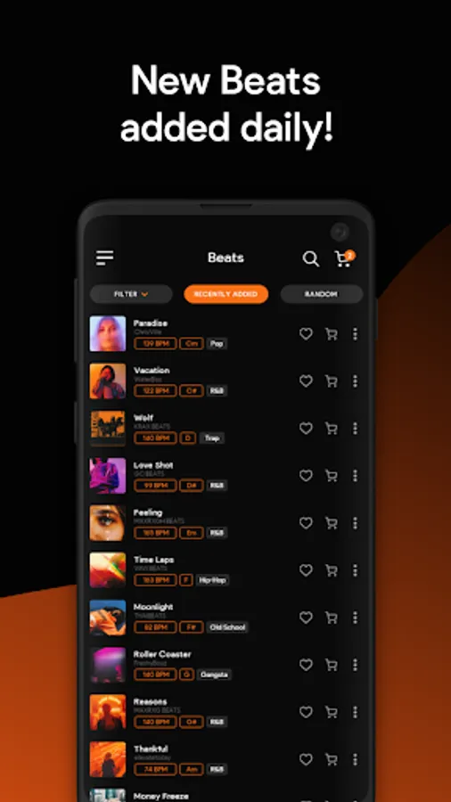 • Full details of each beat: Key, Tempo, Time Length, and Energy.