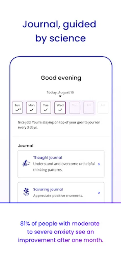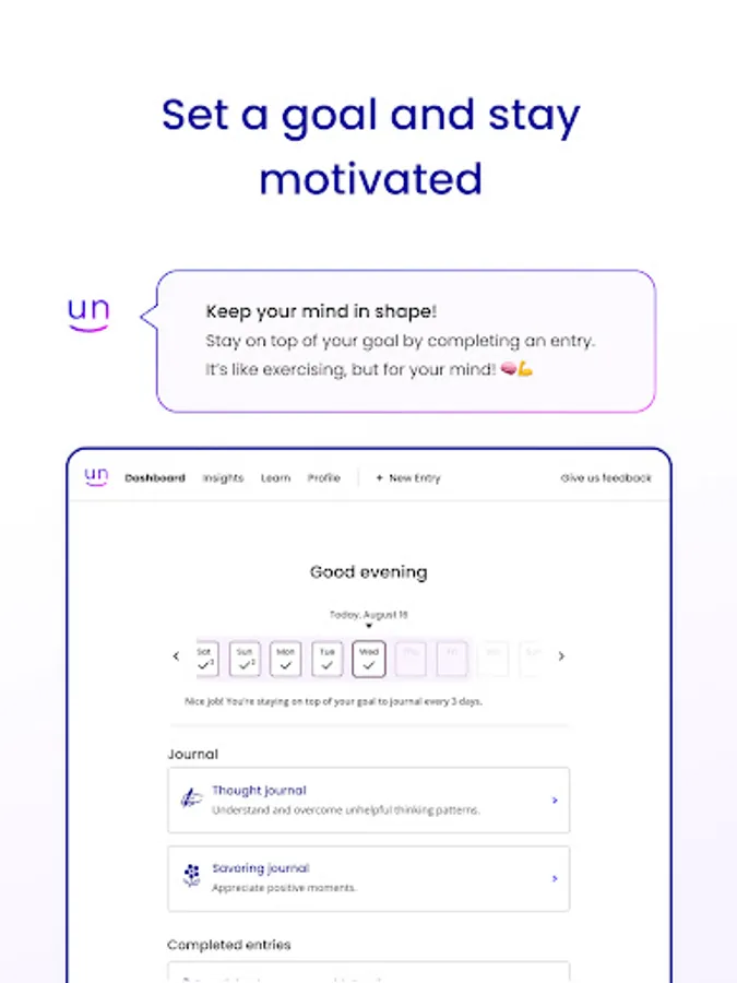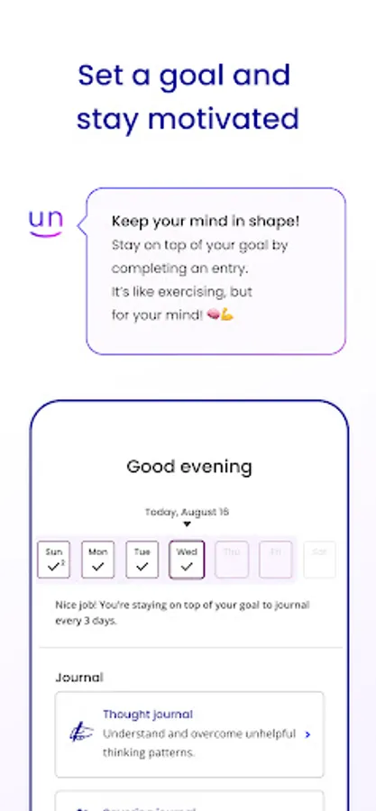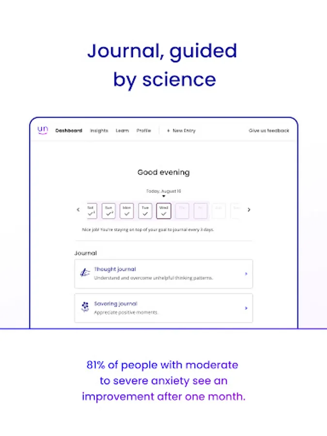 Unstuck is your companion on the journey to better mental health. Using a guided CBT journal to process thoughts and experiences, you’ll develop the skills to overcome anxiety and depression. Unstuck is based on cognitive behavioral therapy (CBT), the gold standard treatment in psychotherapy. The techniques we use are backed by science, so expect results.