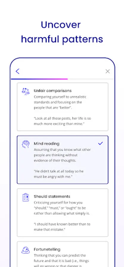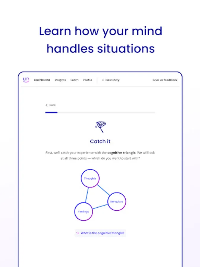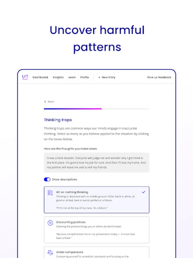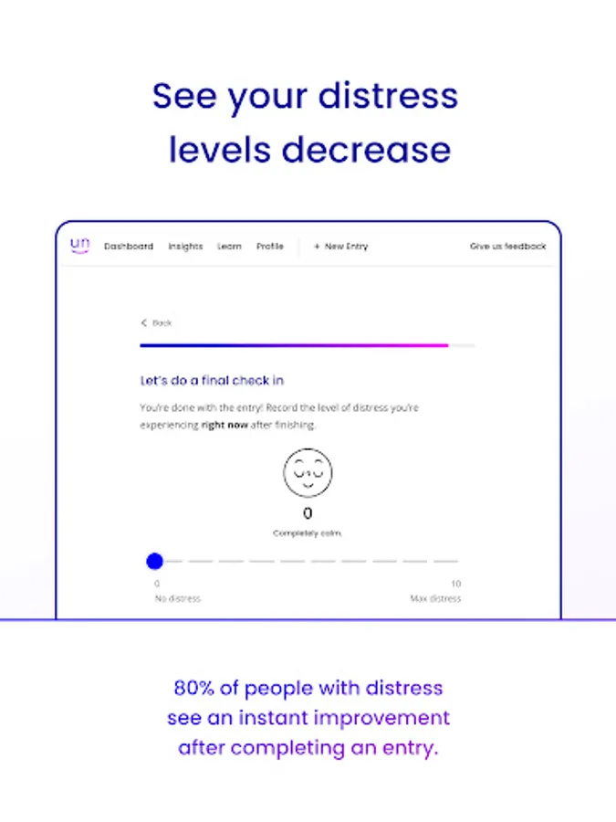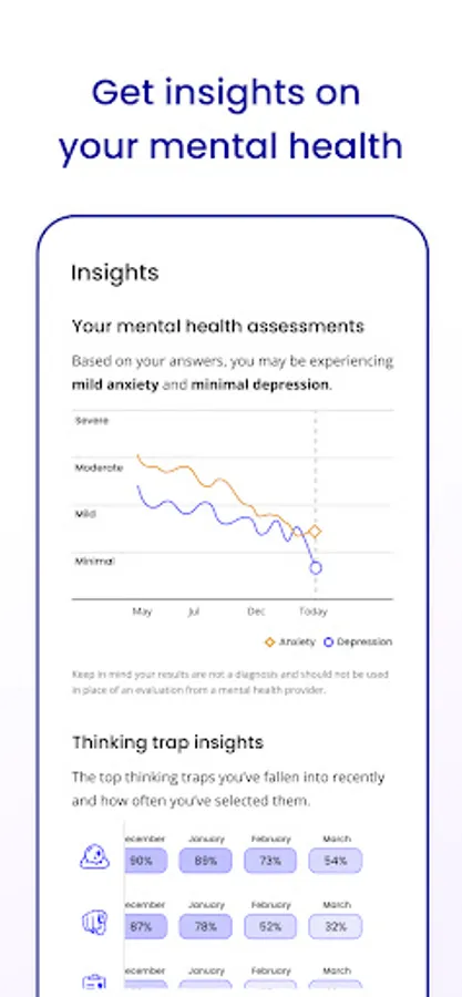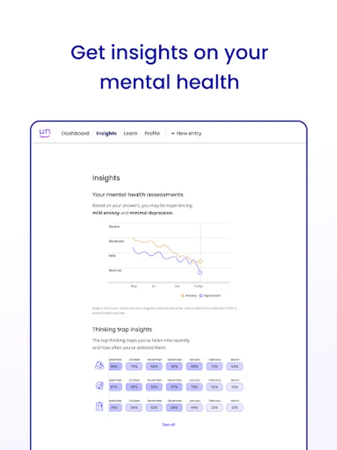 Unstuck will deliver personalized insights so you can understand how your thought patterns change over time. Discover which thinking traps you’ve overcome and which you’re still falling into. See how events in your life are tied to changing levels of anxiety and depression. Draw meaningful connections to accelerate your mental health improvement.