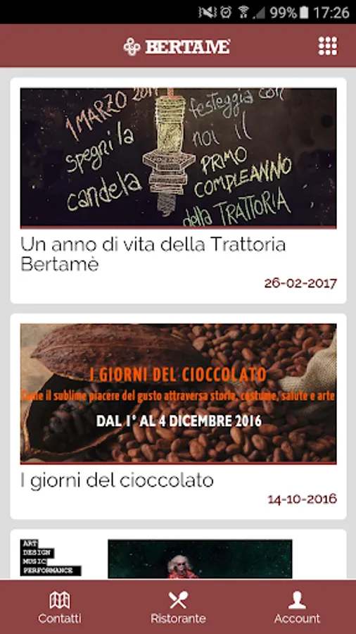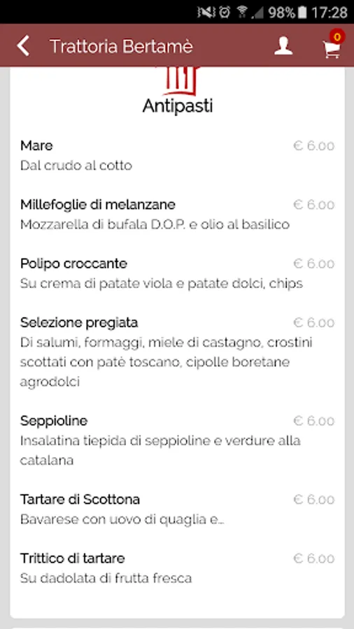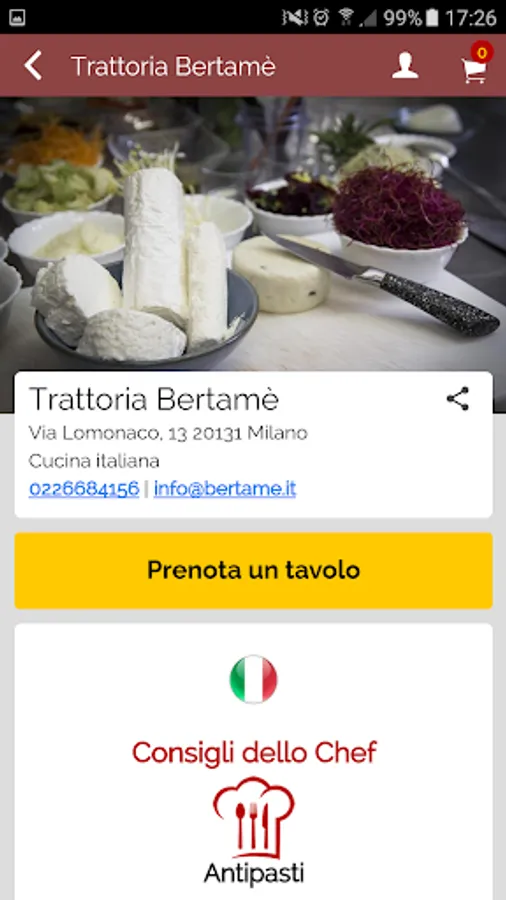 The app provides the ability to view the menu of the day, the events of the restaurant, book a table or order directly a plate for removal.