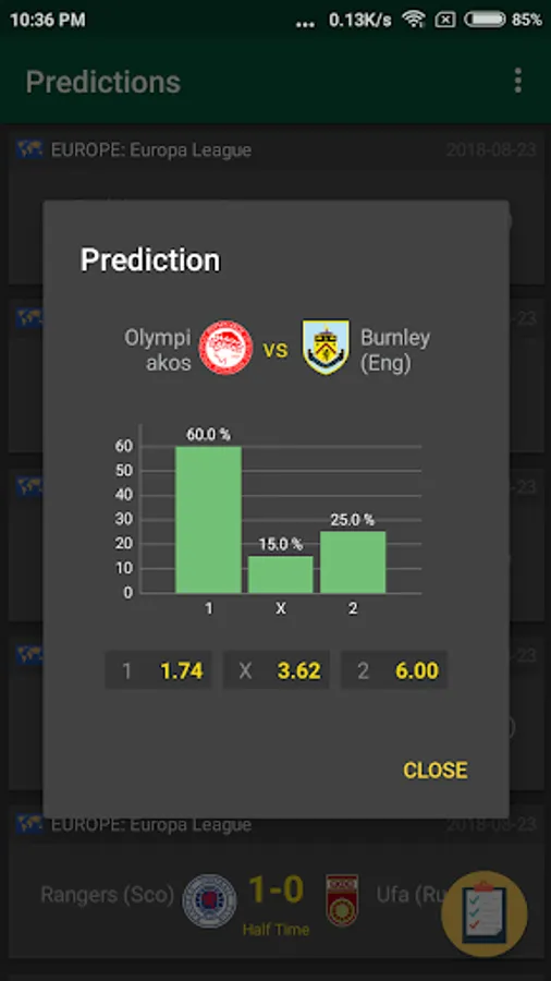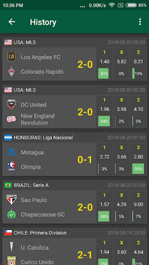Take advantage of the percentage football predictions for home wins, draws, away wins, over and under goals scored.