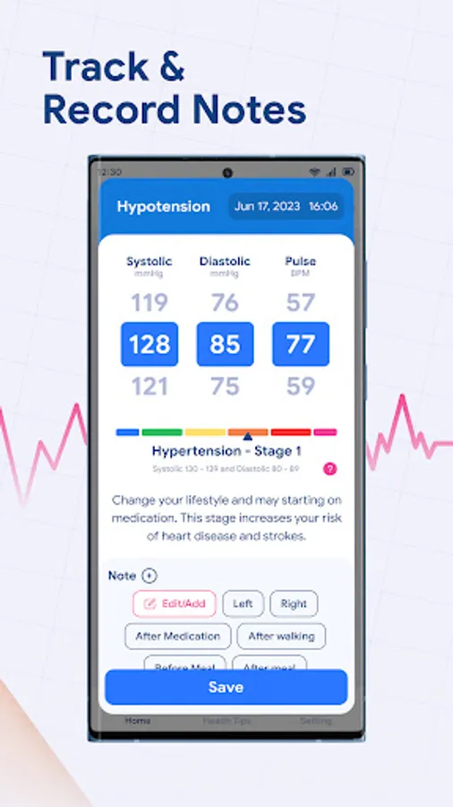 Maintain optimal blood pressure by logging health-related notes like dietary habits and exercise regimen. Leverage this advanced blood pressure recording app for data analysis to guide informed decisions about your training regimen.