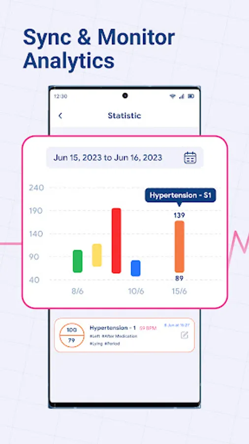 Blood Pressure Tracking app evaluates your blood pressure, heart rate, weight & BMI, and blood sugar levels over a period of time. Utilize health graphs & charts to monitor your progress and spot health patterns.