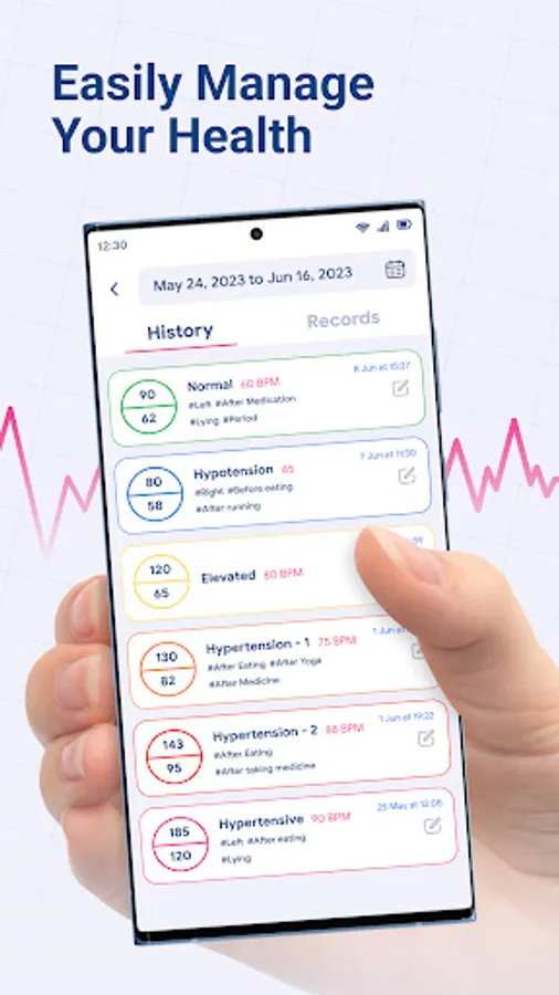 Monitor your BP rate and evaluate your health condition, gaining a valuable understanding of your blood pressure control.
