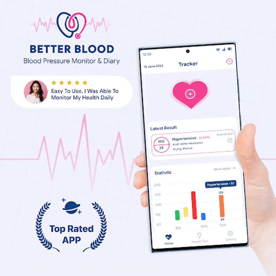 BetterBlood: Blood Pressure Monitor & Diary - A top choice Blood Pressure Monitor app that allows users to track blood pressure and BMI Calculator. Our app, not only helps you to monitor your blood pressure but also keeps health logs with dates and times. Access pertinent information and manage your blood pressure, heart rate, and health anytime & anywhere. GET BetterBlood: Blood Pressure Monitor & Diary now to better your health journey daily!