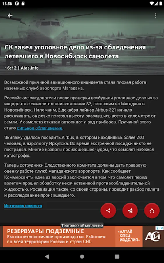 All regional news Novosibirsk region in one application.