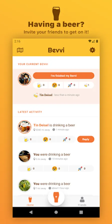 ADD FRIENDS - Find who is already on Bevvi using your contacts list, add using a QR code, or get us to give you suggestions based on your mutual friends.