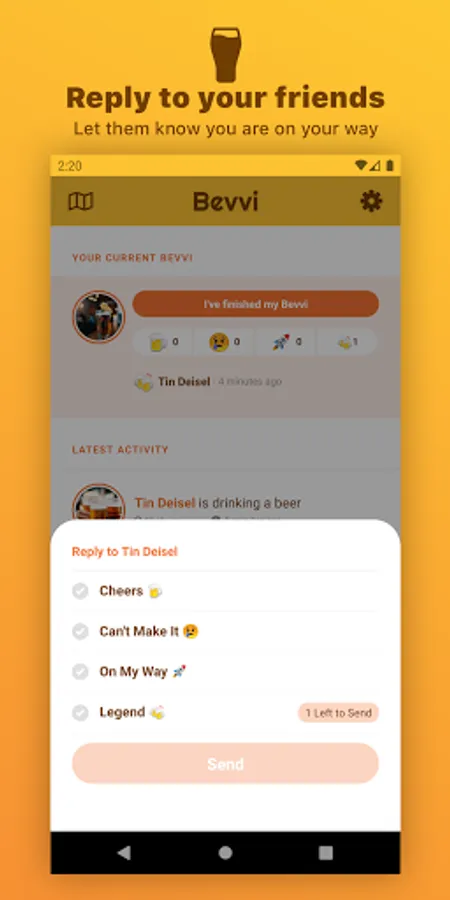 REPLY - Are you on your way? Can’t make it? Or just want to say Cheers? Let them know!