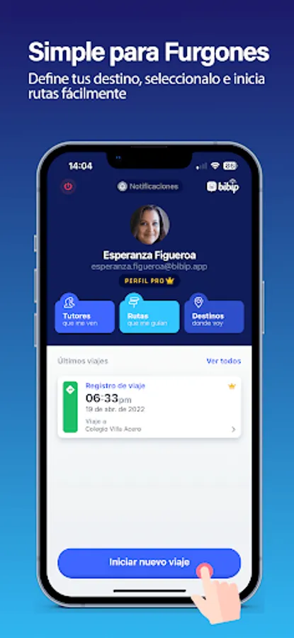 Select a destination and press the button to start or end a trip and the application will automatically send the notifications to the tutors so that they are ready when you arrive