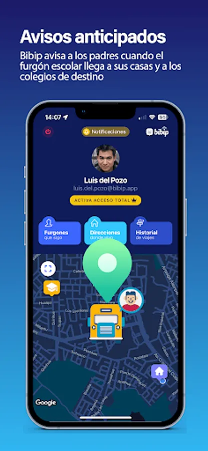 Bibip notifies tutors when the van is away from home and when it arrives at the school