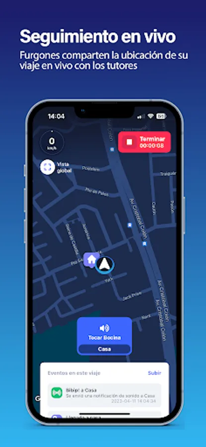 The van sends its position automatically so parents can see their child's route in real time