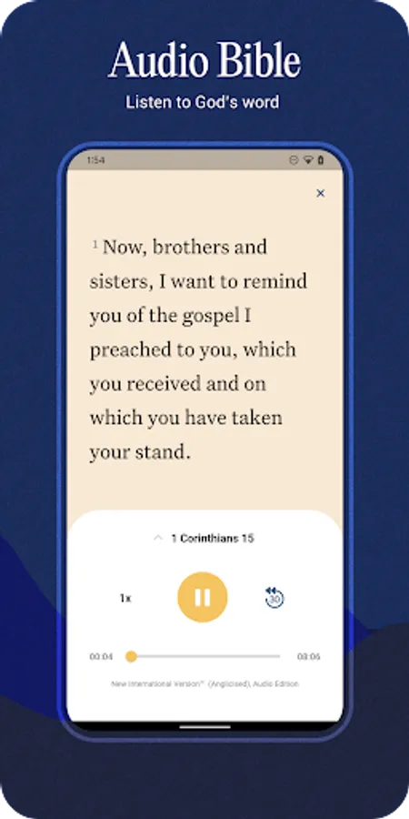 - Audio Bible - Listen to any chapter of the NIV Bible with the included audio feature. Playing audio requires an internet connection and is not available for offline use.