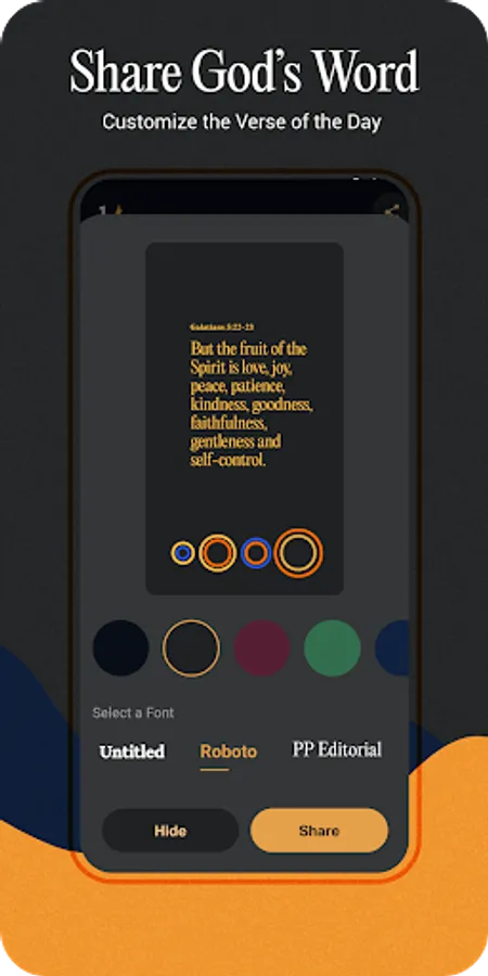 - Share Verses - Create beautiful verse images and share Bible verses to encourage your friends and family.