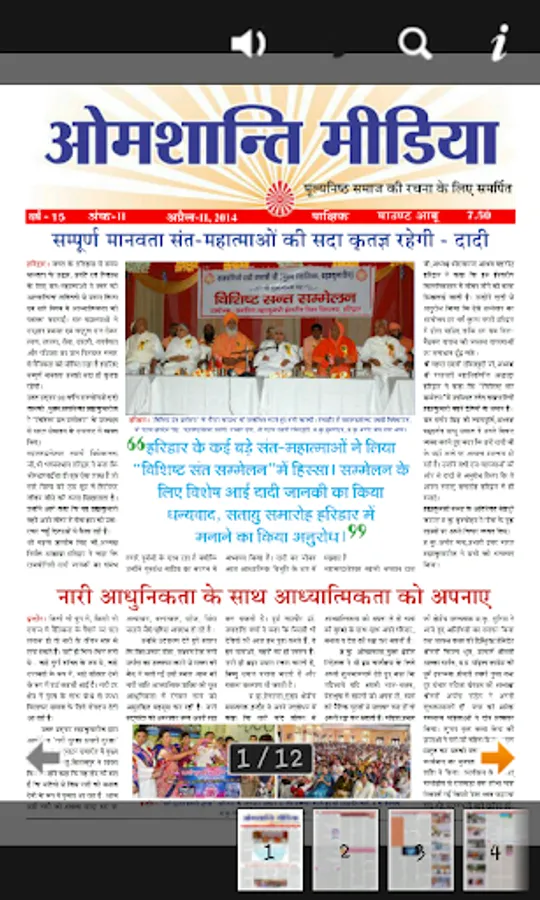 Omshantimedia is fortnightly magazine delivered from Headquarters of Brahma Kumaris as a part of Multimedia Service. It has been launched in March - 1999, since then Omshantimedia serving all to empower spiritually while giving service news of different programmes held at Headqarters and at local branches of Brahma Kumaris around the world. All really enjoy reading Omshantimedia regularly.