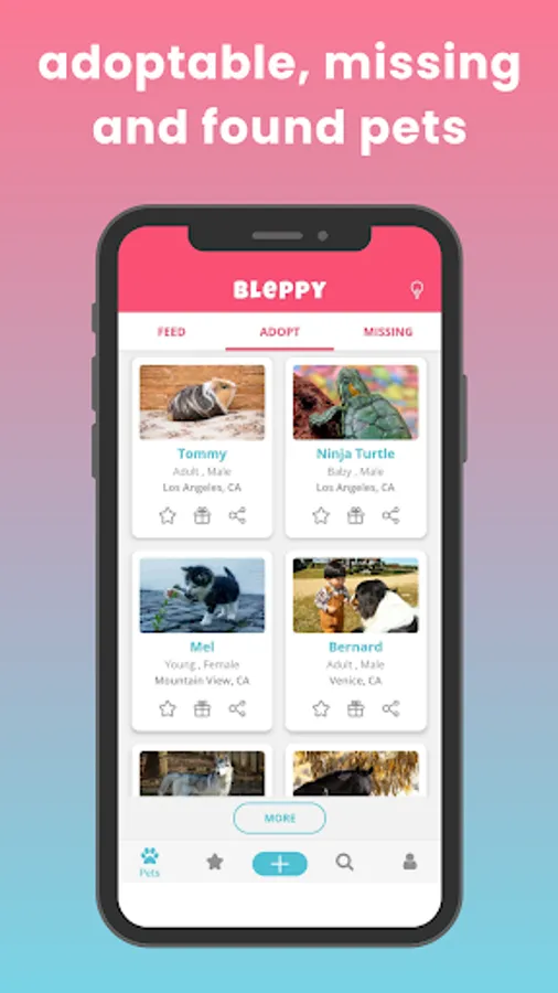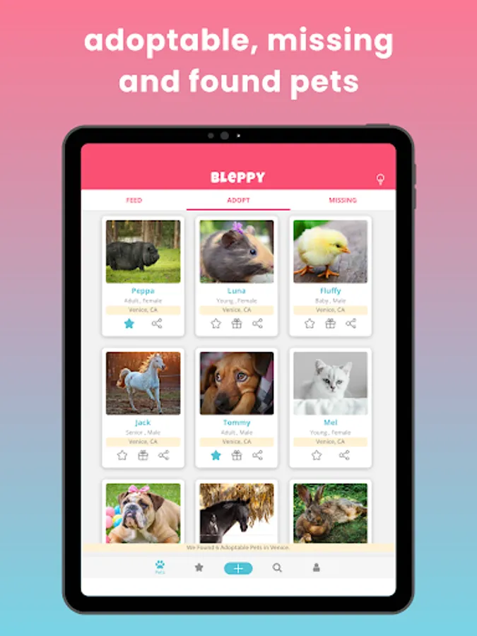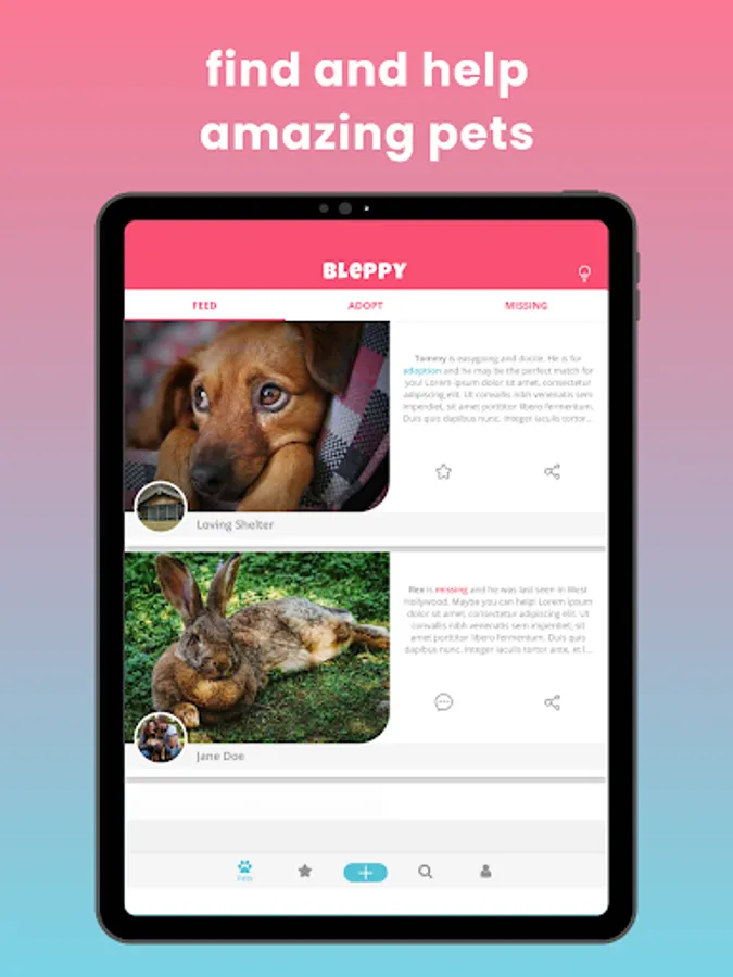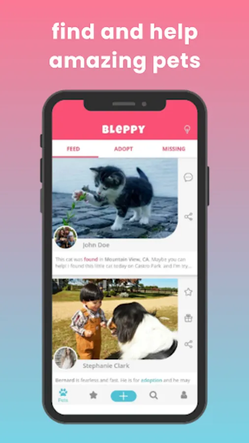 Bleppy is a social-network-like app where you can find and help pets.