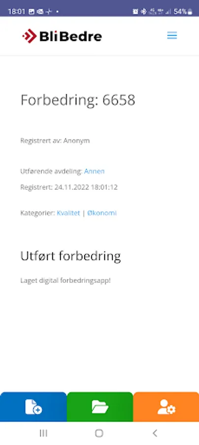 Digital solution for recording improvements carried out at Eramet Norway AS Sauda