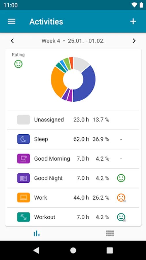 - See statistics about your activity balance of your 168 hours