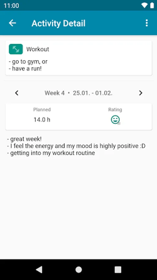 - Track and rate your weeks to improve yourself over time
