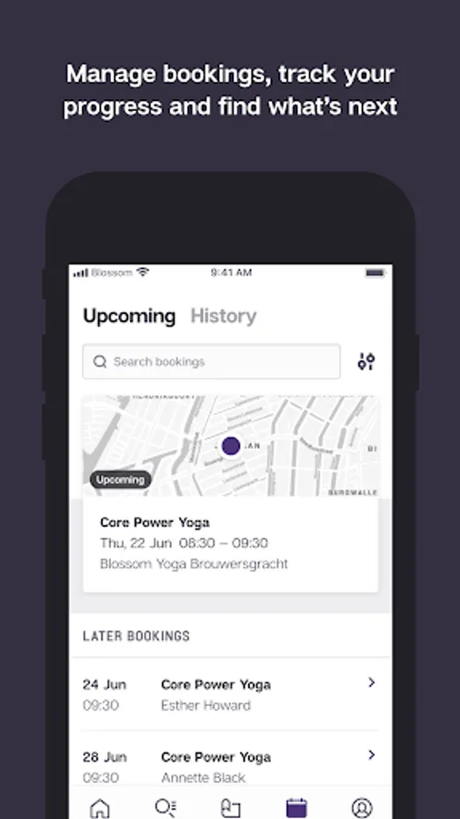 From the Blossom app you can view class schedules, sign up for classes, view your upcoming and past bookings, and edit your profile. Save your time and maximize the convenience of signing up for classes from your own device.