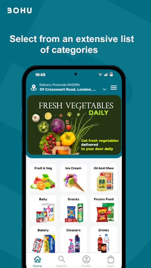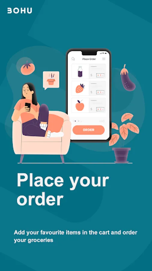 Use our BOHU app to order from an extensive list of groceries and get it delivered at a time suitable to you