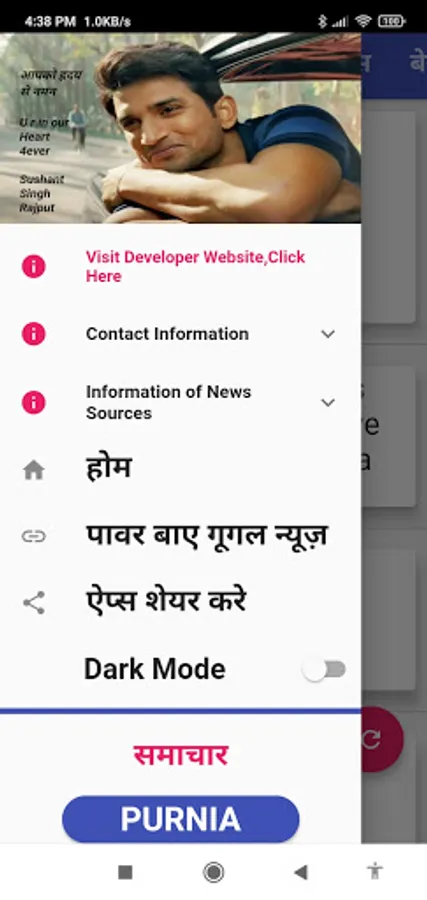 This App fetches News from different News website like Hindustan NewsPaper , Dainik Jagran, Prabhat Khabar , Dainik Bhaskar, Zee News ,News18, R Bharat & More.