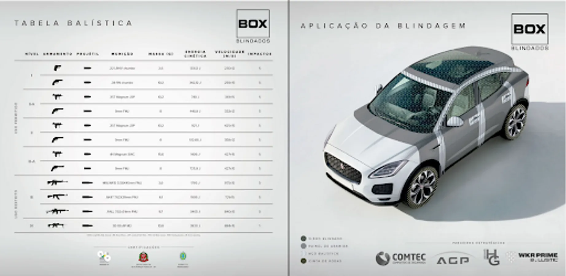 Box Blindados is specialized in providing the most modern automotive armoring system in the segment, with a focus on the quality of materials and the utmost care in their installation, obtaining the highest level of safety, maintaining the originality of the vehicle. Box Blindados has a large showroom, with cars from zero km for prompt delivery and armored and unarmored semi-new vehicles, with warranty and origin. All suppliers and materials applied to the vehicle are fully in accordance with all national and international standards, undergoing constant tests to guarantee the maximum quality of its products, with scheduled revisions, with pre-defined values.