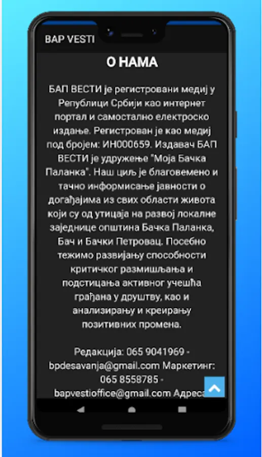 BAP VESTI is a registered media in the Republic of Serbia as an internet portal and an independent electronic edition.