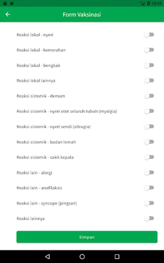 Fitur yang tersedia dalam aplikasi Mobile PCare Vaksinasi ini adalah:
