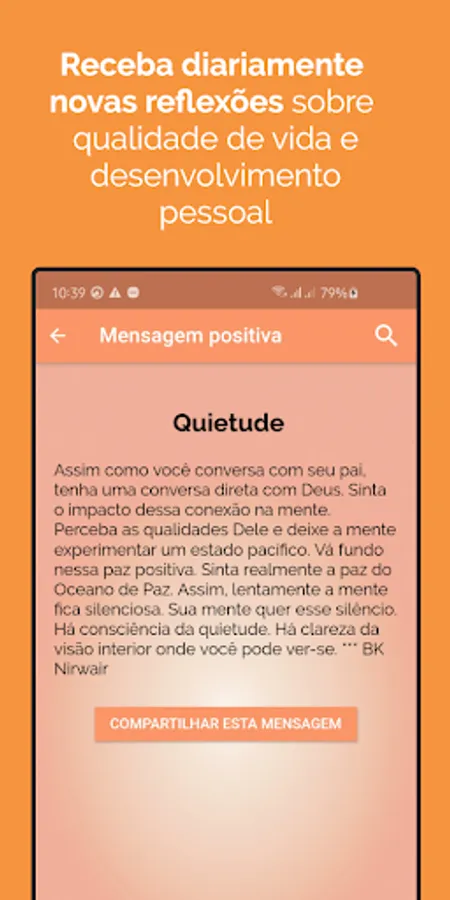 1) In the APP you can read a new inspiring positive message every day, you can still share it with your friends or even search for a message with topics of interest to you based on more than 1500 messages sent in the last 5 years.