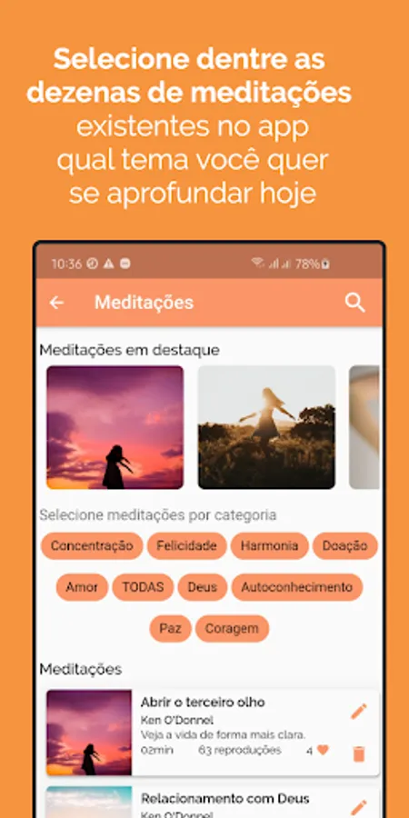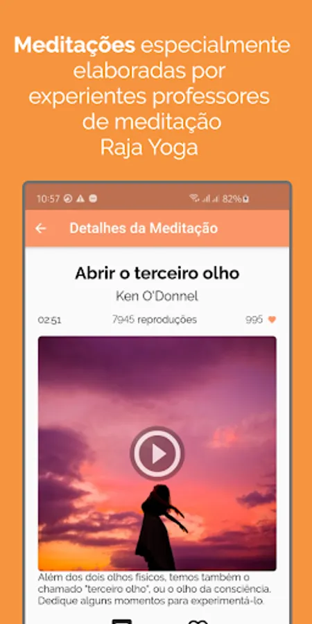 2) The APP has several meditations such as: guided audio and video, meditation with timer where you define how long you want to meditate. The APP offers you statistics of your daily, weekly, monthly meditation time so that you can know how much you meditated within a certain period.