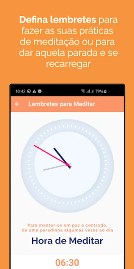 4) You can also create reminders to meditate, configuring according to your availability and MeditarBK will notify you at the chosen time.