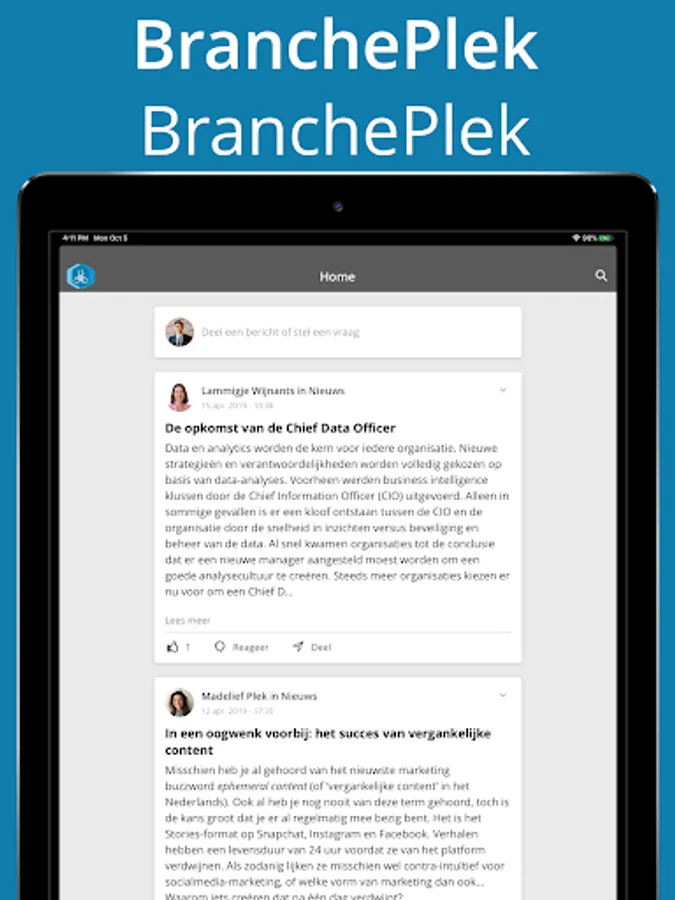 BranchePlek optimizes collaboration between colleagues, organizations, partnerships and communities. In addition to interaction between members, the online tool also organises meetings / events and the sharing and archiving of documents. This is all based on the ability to work with closed and open groups to easily connect and stay in touch with each other. All this within a safe environment.