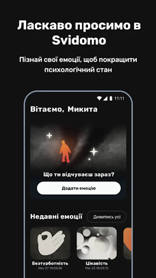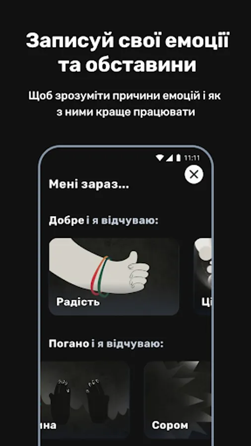 Welcome to our app that will help you better understand emotions and improve your psychological state! With our app, you can record your emotions, perform psychological tests and exercises, and even share your notes with your psychologist.