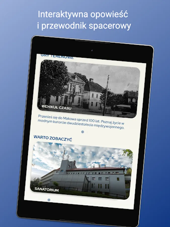 The application contains two educational and cultural paths in the form of field games dedicated to the cultural heritage of Maków Podhalański: