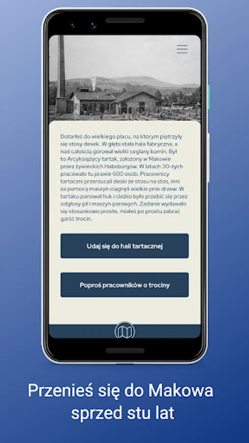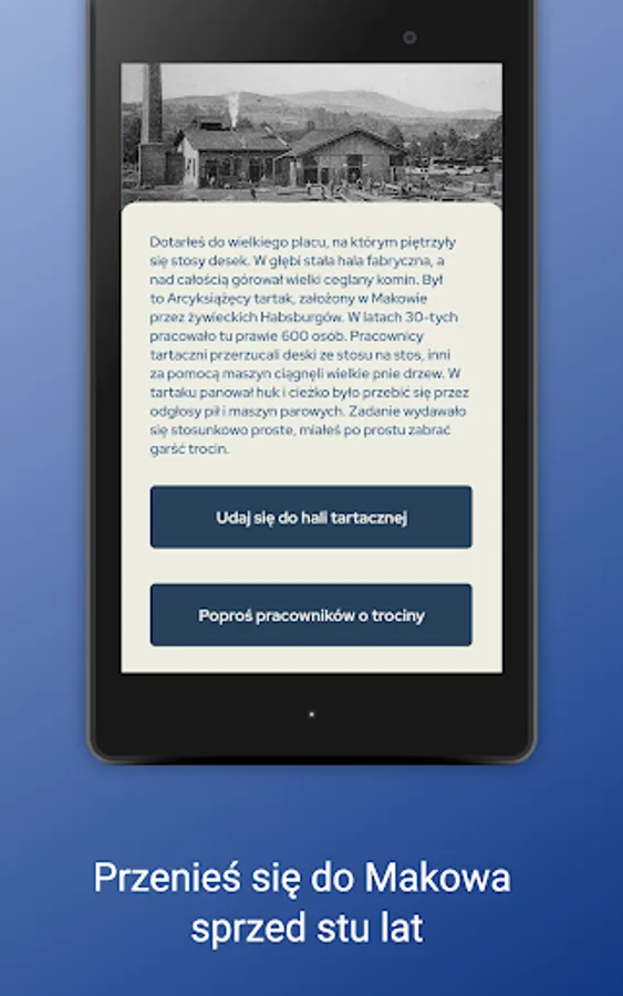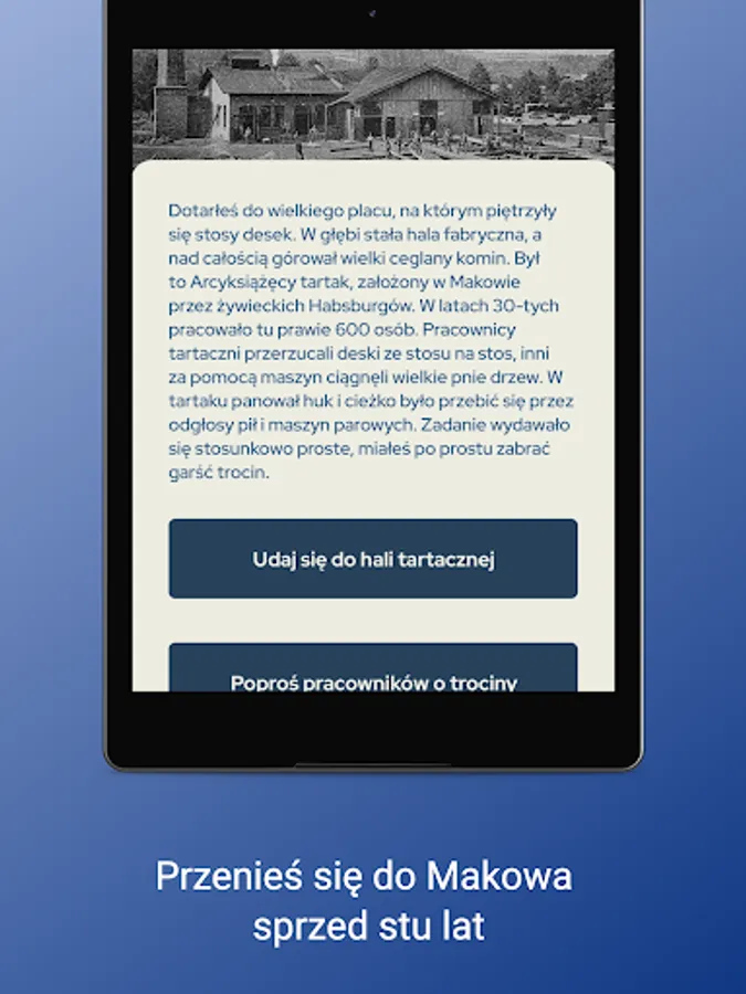 and an interactive story in which, following the fate of the main character - a time traveler, we move to Maków Podhalański in 1935 and learn about life in a fashionable resort, which was Maków at that time.