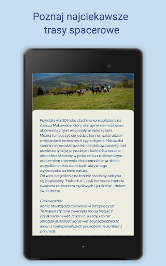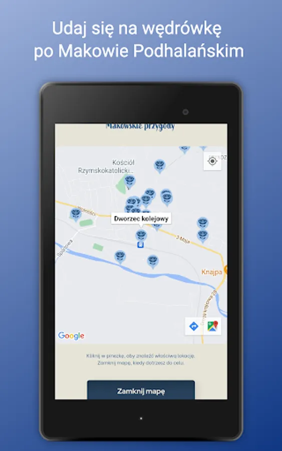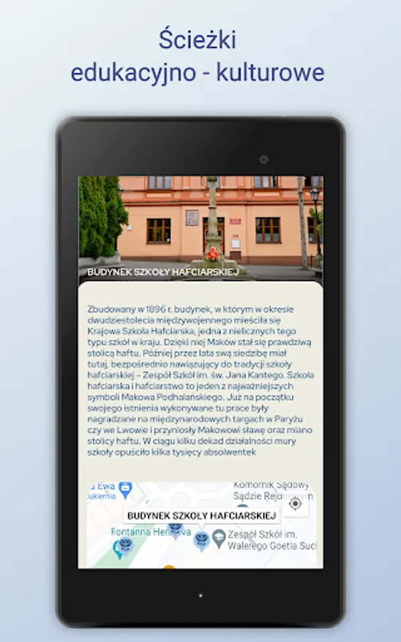 The application also allows you to review the most important tourist attractions of Maków Podhalański along with their location.