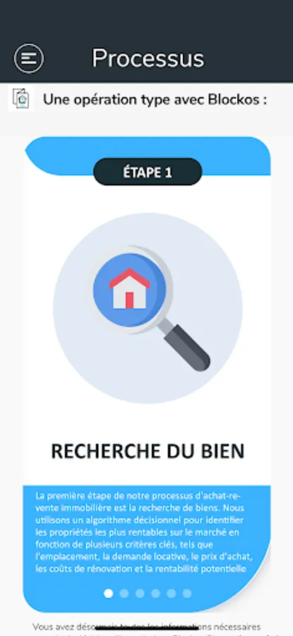Discover the Blockos application, your essential companion to explore the exciting world of real estate purchase-resale! Our application allows you to browse a selection of properties available for purchase and resale, offered by Blockos.