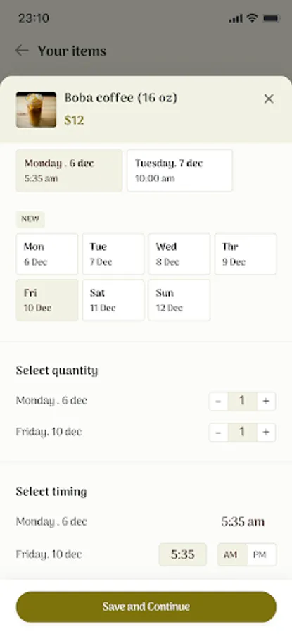 3) Scheduled delivery -- simply schedule your coffee at the hour and minute you would like it to be delivered. This allows you to spend less time on apps and get on with your day.