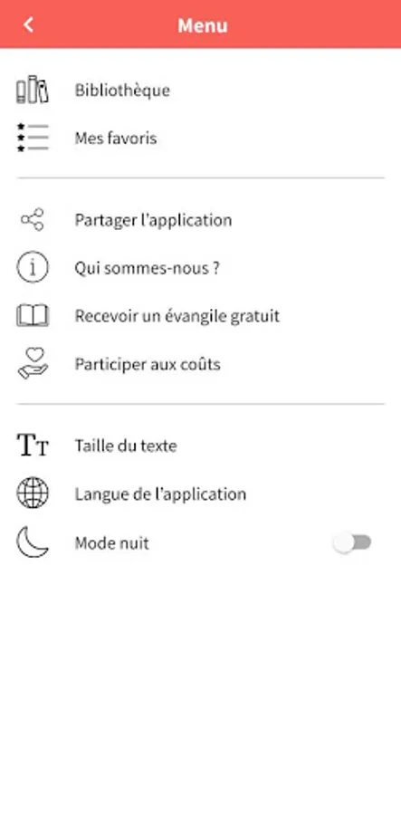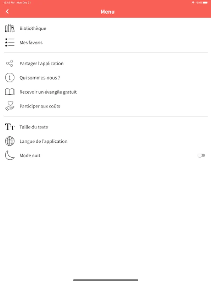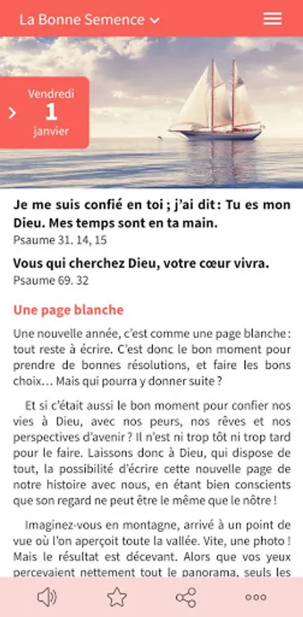 - écoute audio du message du jour (pour cette fonctionnalité, une connexion internet est nécessaire)