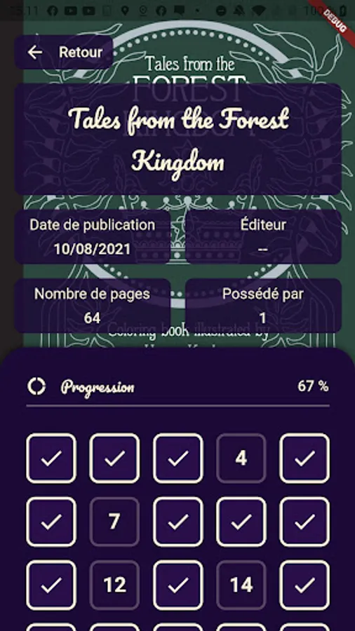Ajoutez des livres à votre collection, et notez les coloriages terminés vous pouvez ainsi voir d’un simple coup d’œil votre progression.